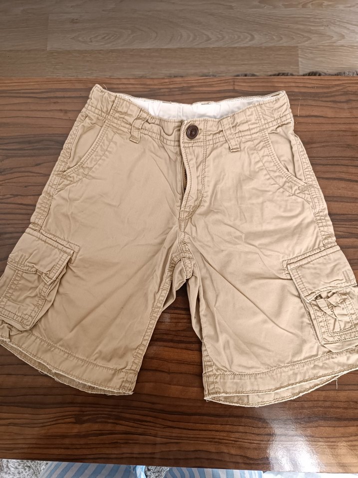 Bej renkli, pamuk kumaştan yapılmış, kemerli ve bol kesim erkek çocuk şortu. Yan cepleri ve desensiz tasarımıyla sokak tarzına uygun.