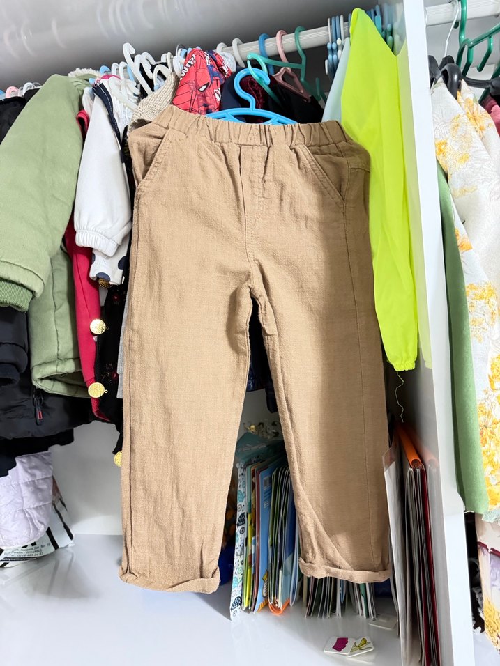 Erkek çocuk Bej Keten Rahat Kesim Kemerli Pantolon