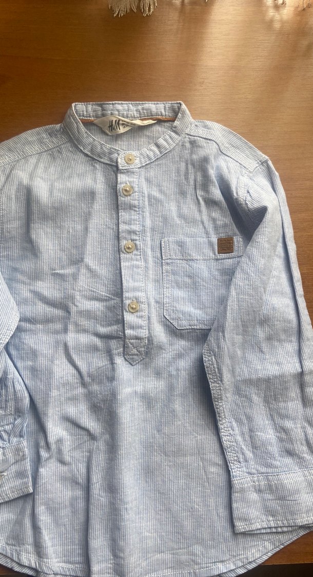 Keten kumaştan yapılmış, bej renkli, uzun kollu ve düğmeli erkek çocuk gömleği. Regular fit ve yakalı, tek cep detaylı rahat bir model.