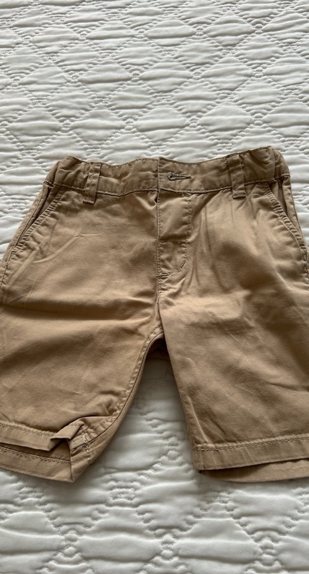 Erkek çocuklar için kemerli, düz tasarımlı, pamuklu ve rahat kesim bej şort.