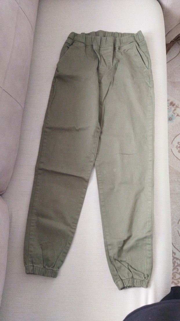 Bej renkli, rahat kesim erkek çocuk pantolonu, elastik bel ve paça ile sokak stili için uygun, sentetik kumaştan üretilmiştir.