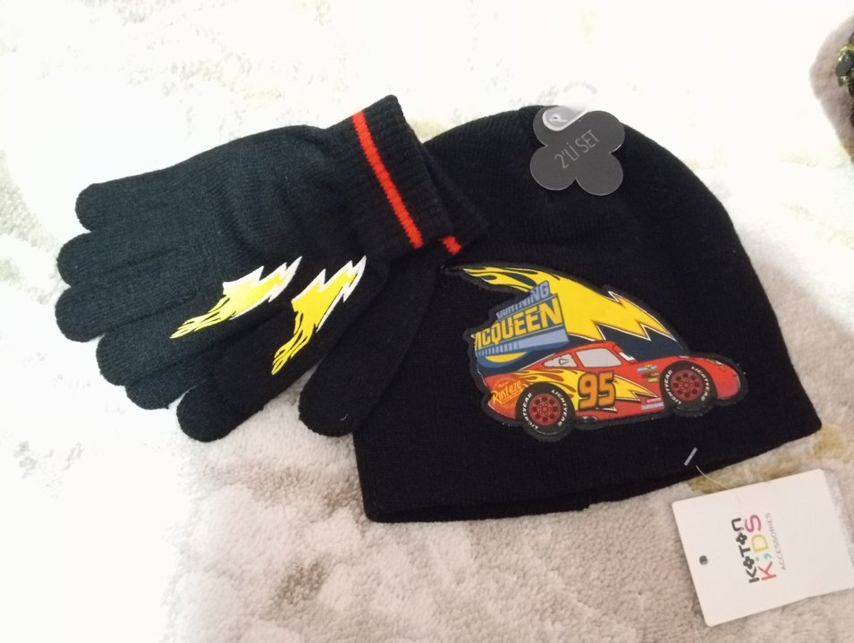 sıfır etiketli koton. 3 yaş bere eldiven set. şimşek McQueen'li