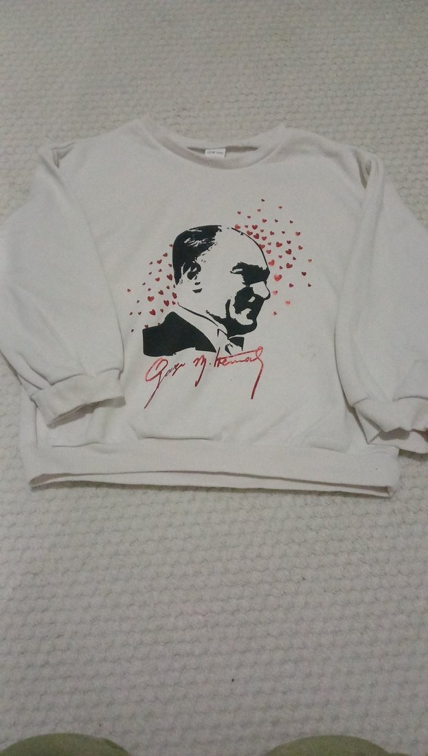 Pamuklu, uzun kollu, yuvarlak yakalı, bol kesim erkek sweatshirt. Beyaz zemin üzerinde baskılı portre deseni bulunur. Günlük kullanım için uygundur. 4 5 yaş uygun