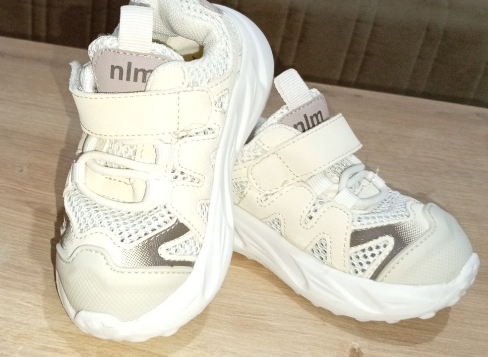 Cırt cırtlı beyaz erkek çocuk spor ayakkabısı, yumuşak kauçuk tabanlı ve baskılı detaylara sahip. "olm" logosuyla tamamlanmıştır.