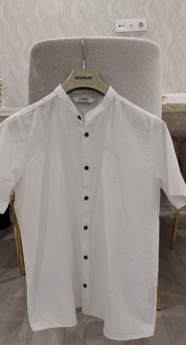 Erkek beyaz gömlek, kısa kollu ve düğmeli ön yapıya sahiptir. Pamuk kumaştan üretilmiş, normal kesim ve minimalist tarzda günlük kullanıma uygundur. Desensiz ve normal boydadır. Bir kere kullanıldi hiç deformesi yoktur