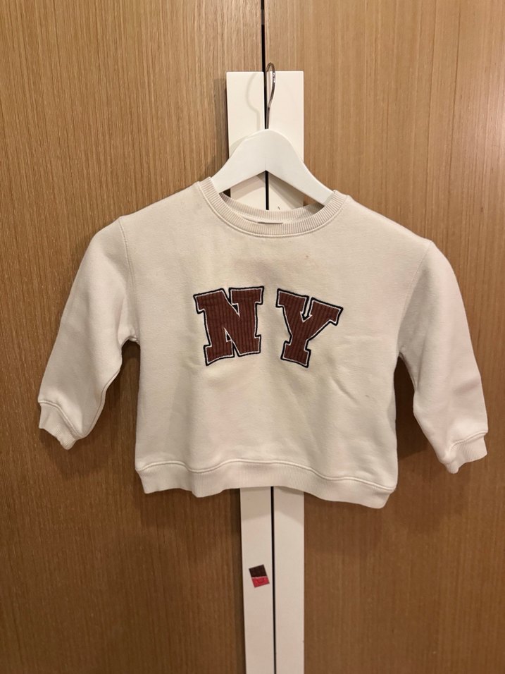 Uzun kollu ve yuvarlak yakalı, bol kesim erkek çocuk sweatshirtü. Hafif renkte, yumuşak ve sıcak kumaştan örülmüş, üzerinde 'NY' baskısı bulunur.