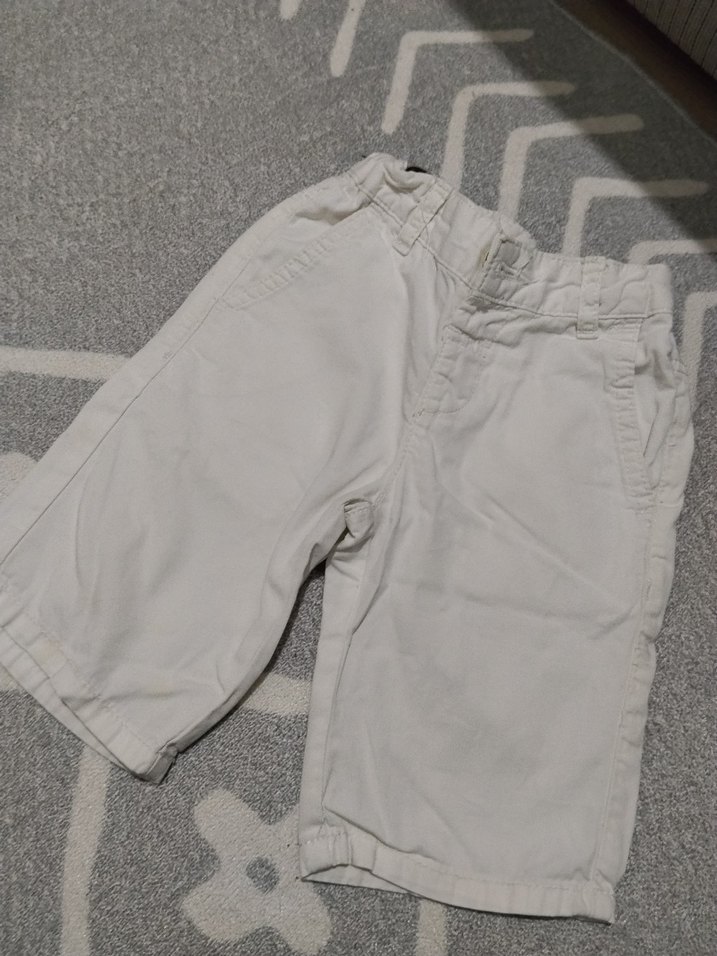 Erkek çocuklar için düğmeli detaylı, bol kesim beyaz pamuklu şort. Düz ve sokak tarzına uygun.