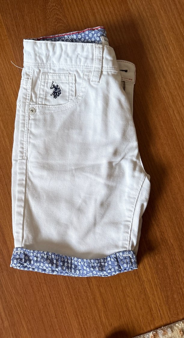 Erkek çocuklar için beyaz pamuklu regular fit şort, düğmeli ve desen içermeyen sade tasarıma sahip. Çiçek desenli iç manşet ve küçük işlemeli detaylarıyla sokak modasına uygun.