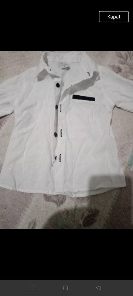 Beyaz pamuklu erkek çocuk gömleği, uzun kollu ve düğmeli, regular fit kesim. Koyu renk küçük cep detayıyla sokak stiline uygun.