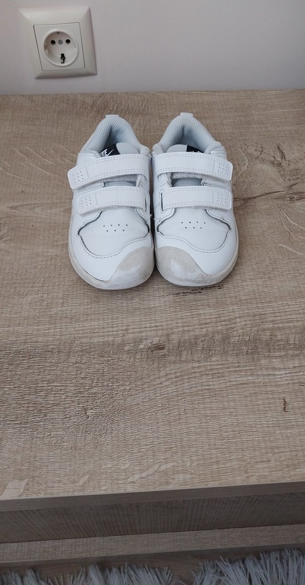 Beyaz, cırt cırtlı, kauçuk tabanlı erkek çocuk spor ayakkabısı. Sokak stiline uygun, desensiz.26 numara 15 cm