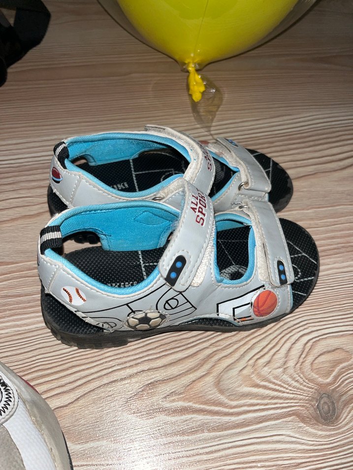 Beyaz renkli, spor temalı desenlere sahip erkek çocuk sandaletleri, kolay kapanan cırt cırtlı bantlarla donatılmıştır. Dayanıklı kauçuk malzemeden üretilmiştir. ⚽