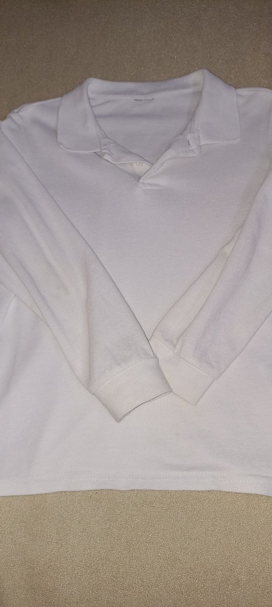 Erkekler için beyaz, polo yaka ve uzun kollu, yumuşak ve sıcak kumaştan, normal boyda ve vücuda oturan kesime sahip minimal ve sade sweatshirt. erkek çocuk lacost kumaş üst.5-6 yaş etiketli ürün Waikiki markadır iç etiketi duruyor ama yaka etiketini kesmişim.bir kol manseti ve karın kısmında sarımtırak lekeler var.leke çıkartıcı ile denemedim.baska bir sorun yok