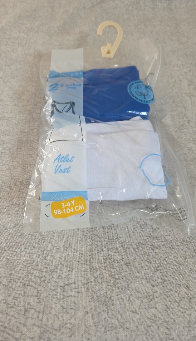 Erkek Çocuk beyaz ve Mavi 2 li Atlet