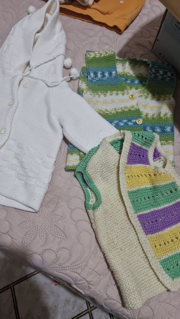 Bohem tarzda, uzun kollu, bol kesim pastel çok renkli örgü erkek çocuk hırkaları. Yumuşak örme kumaştan, kat kat giymeye uygun.