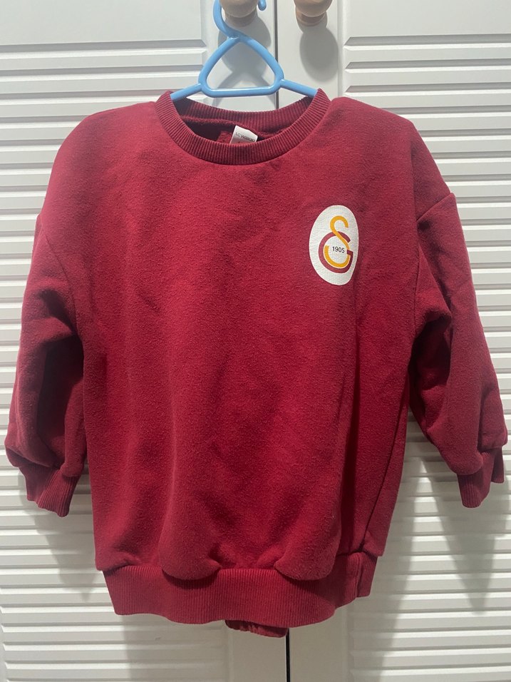 Erkek çocuklar için yuvarlak yaka, uzun kollu sweatshirt. Yumuşak ve sıcak kumaştan, bol kesim ve parlak kırmızı renkte. Düğmeli detay ve logo bulunur Alt üst şeklindedir .