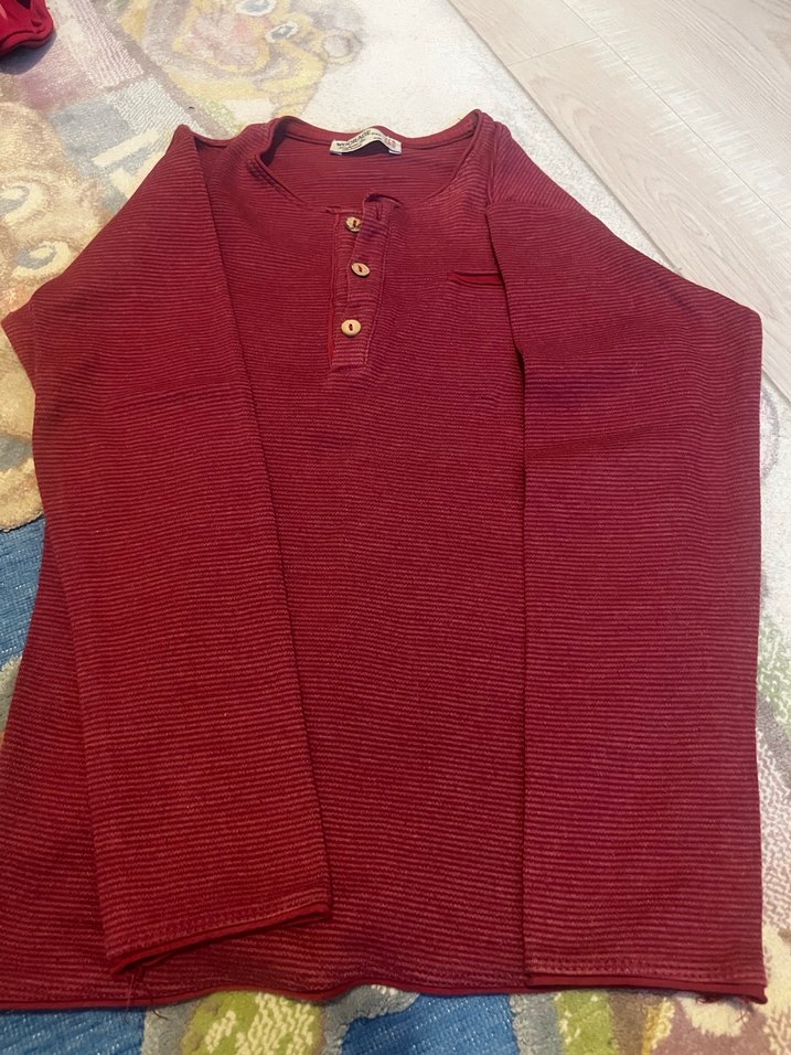 Bordo renkli, düğmeli ve uzun kollu Rahat kalıplı ve yumuşak.Günlük kullanıma uygundur.