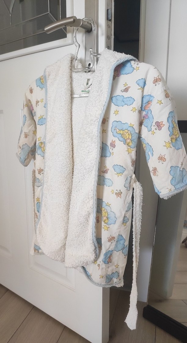 Erkek çocuklar için bulut ve yıldız baskılı, havlu iç yüzeyli uzun kollu bornoz, 6 yaş için uygun ☁️