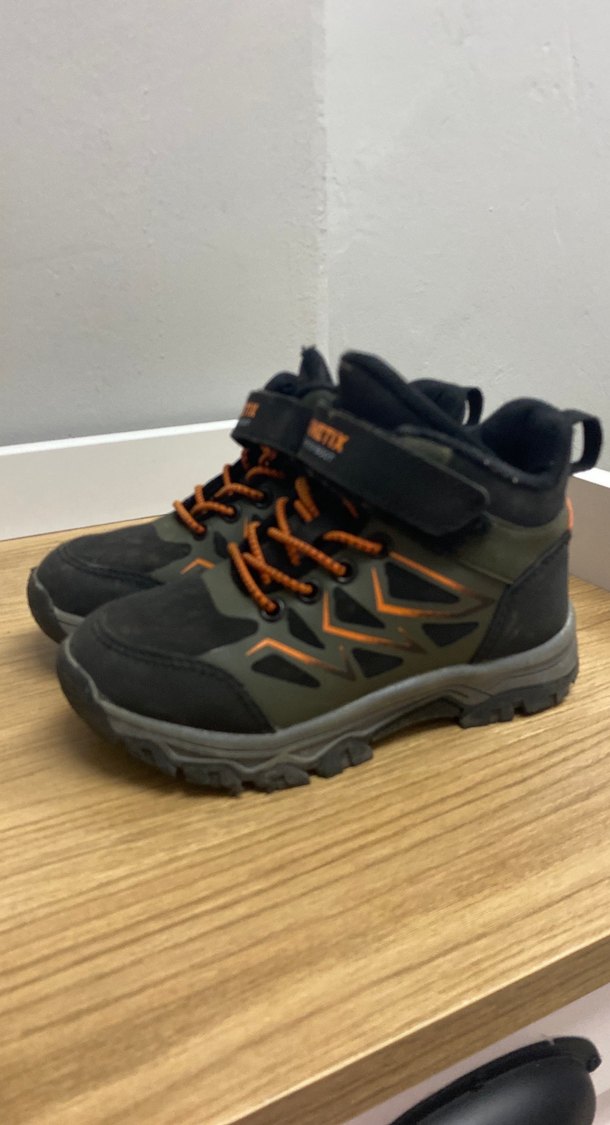 , cırt cırt bantlı ve dayanıklı kauçuk tabanlı erkek çocuk botu. Çok az kullanıldı hiçbir sorunu yok
