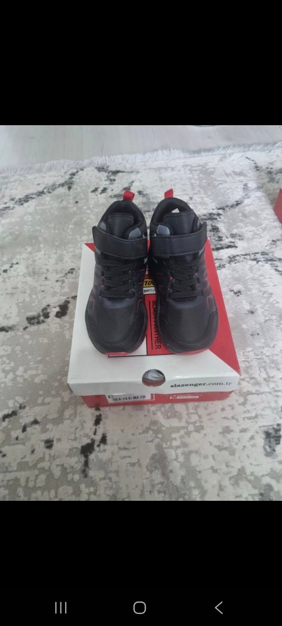 Siyah baskılı erkek çocuk bot kolay kullanım için cırt cırtlı bantlıdır. Kauçuk tabanlı, bir kac kez giyildi sifir ayarinda