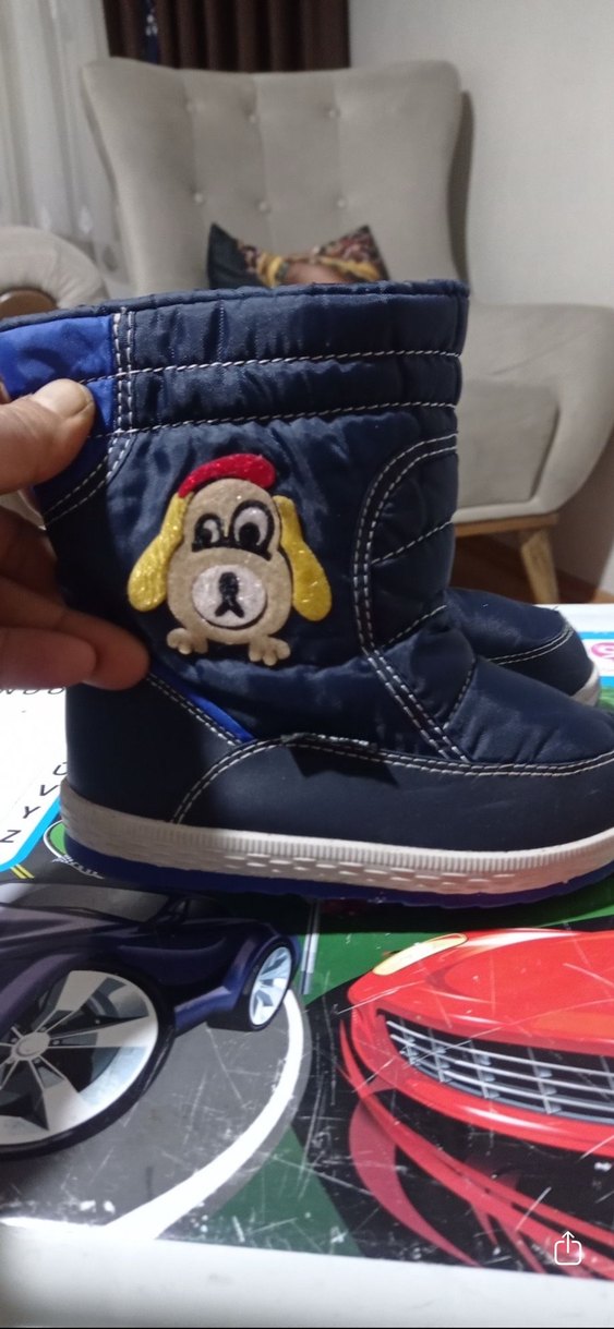 Renkli nakışlı köpek deseni, kauçuk malzeme ve kolay giyimi sağlayan cırt cırtlı kaydırmaz erkek çocuk botları.