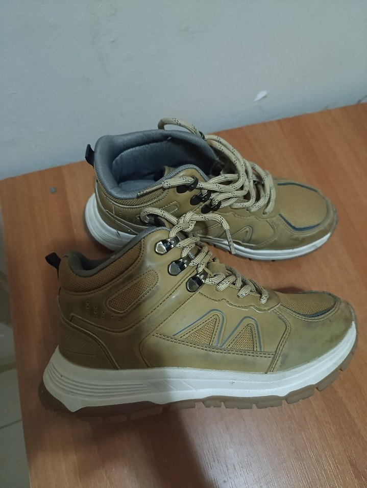 Bej renginde bağcıklı erkek çocuk botu. sağlamdır sadece ön kısmında hafif renk değişimi var