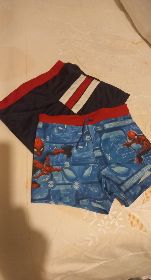 Koyu lacivert renkli, kırmızı beyaz şerit detaylı markasız ve Spiderman figürlü erkek çocuk boxer, kırmızı bel bandı 4-5 yaş için LCW mayo.