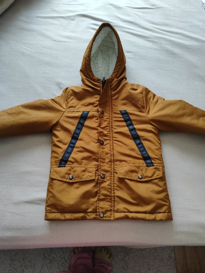 Erkek çocuklar için Camel rengi, düğmeli ve yumuşak iç astarlı, mont. Sokak tarzı için ideal, iki ön cepli ve yakası notched lapel.