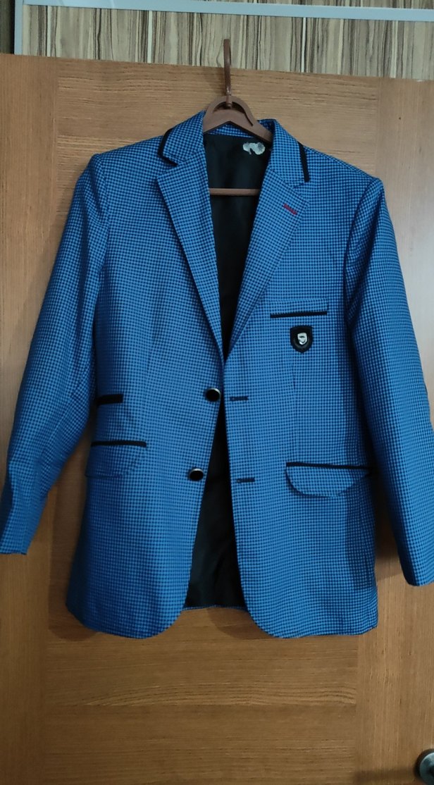 Erkek çocuk 10-11 yaş mavi siyah kareli ceket H&M marka pantolon pantolonun yanları saten şeritli