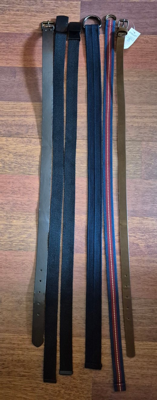 Erkekler için koyu tonlarda, çok renkli şeritlere sahip kemerler. Sokak stili ve rahat şıklığı bir arada sunar.