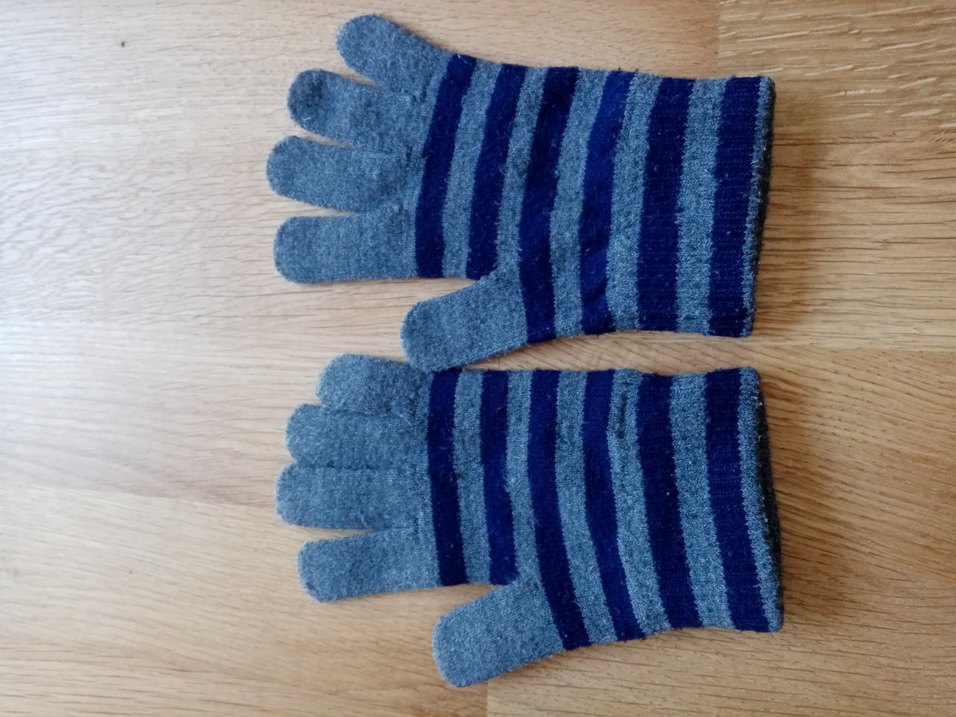 Gri lacivert çizgili yün eldiven. 7-8-9 yaş