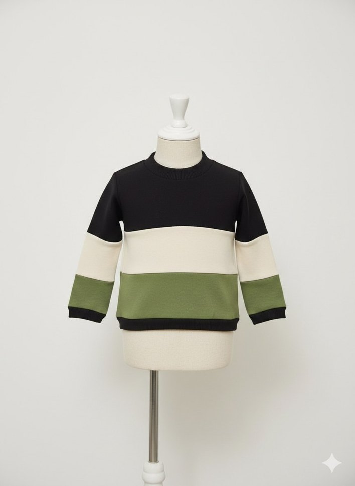 Erkek çocuk için 3 iplik polar , uzun kollu ve bisiklet yaka sweatshirt. Yumuşak kumaştan, çizgili desenli ve regular fit kesime sahip, sokak stili için uygun. (kendim dikiyorum)