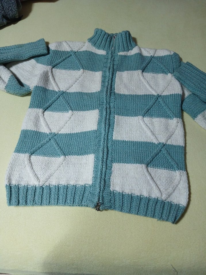 Erkek uzun kollu, fermuarlı, çizgili el örgüsü hırka. Yumuşak örme kumaştan, rahat ve günlük kullanıma uygun. hiç kullanılmadı
