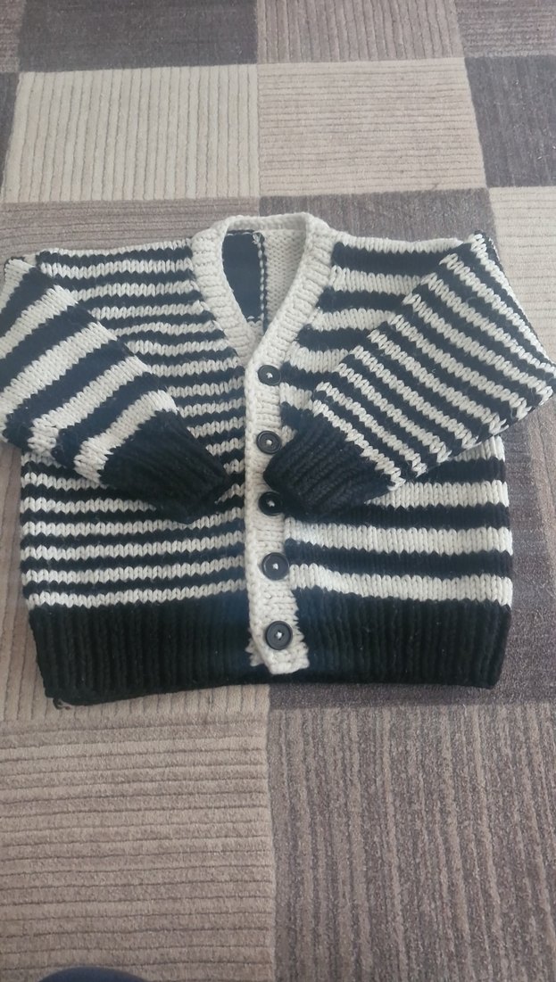 Erkek çocuk için triko örgü, çizgili desenli, fitted kesim, uzun kollu hırka. Düğmeli ve rahat normcore tarzda.