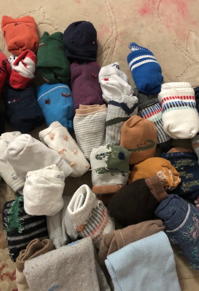 Çeşitli koyu ve çok renkli erkek çocuk çorapları, günlük kullanım için yumuşak kumaştan yapılmıştır. 3 adet kilotlu çorap 2 adet 4-5 yaş penti baxer 1 şapka 58adet çorap penti polo lcw marka karışıktır numaraları 24-27 yaşlara uygundur