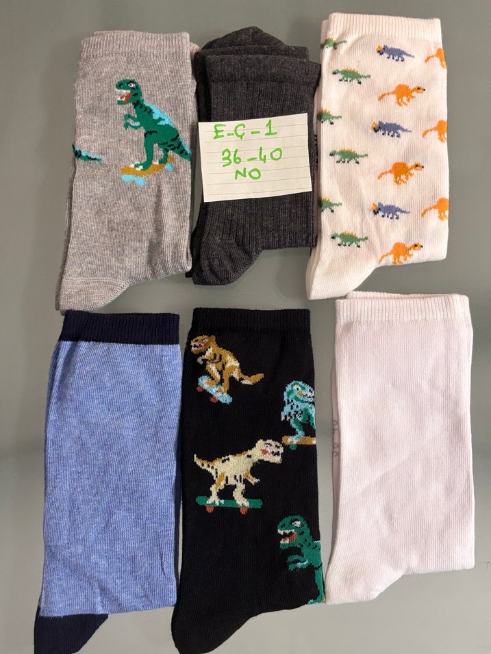 Çok renkli ve gri tonlarda, dinozor desenli erkek çocuk çorap seti. Pamuk kumaştan, 36-40 numara arası uyumlu.