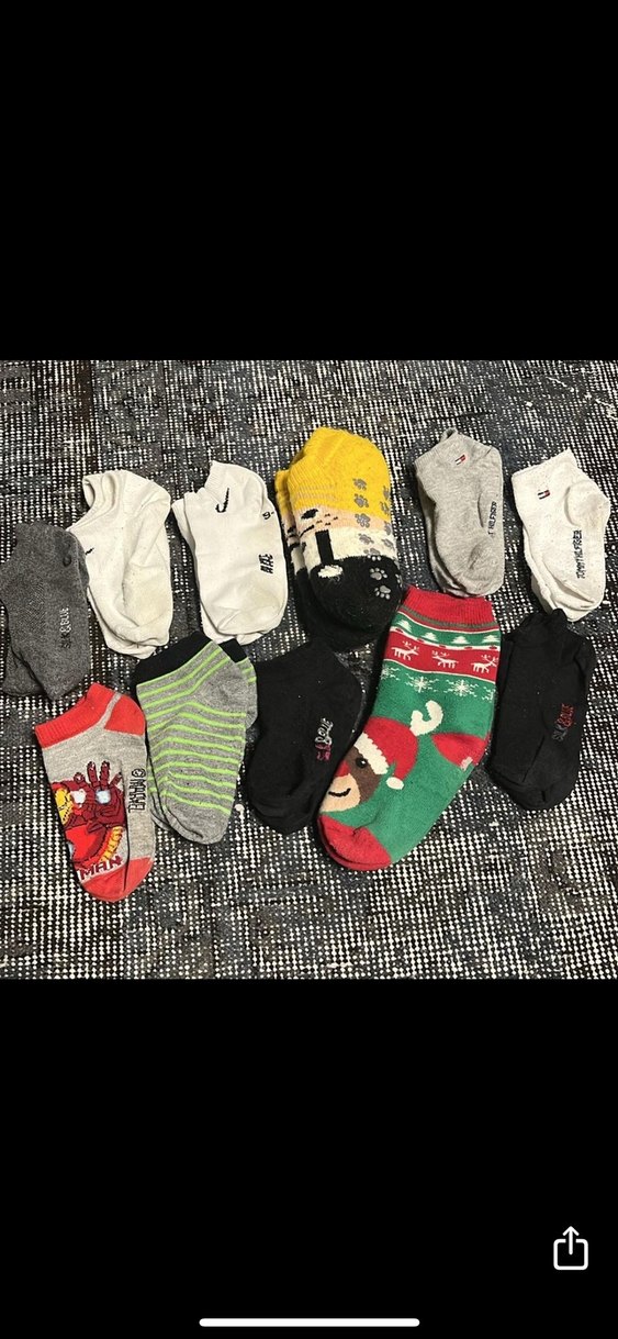 Erkek çocuklar için çeşitli renkli desenlere sahip, koyu ve canlı tonlarda çoraplar 7-8 yaşa uygun