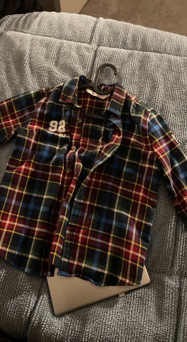 Erkek çocuk için düğmeli, uzun kollu, bol kesim ve çok renkli ekose desenli gömlek. Sokak stiline uygun rahat bir modeldir.