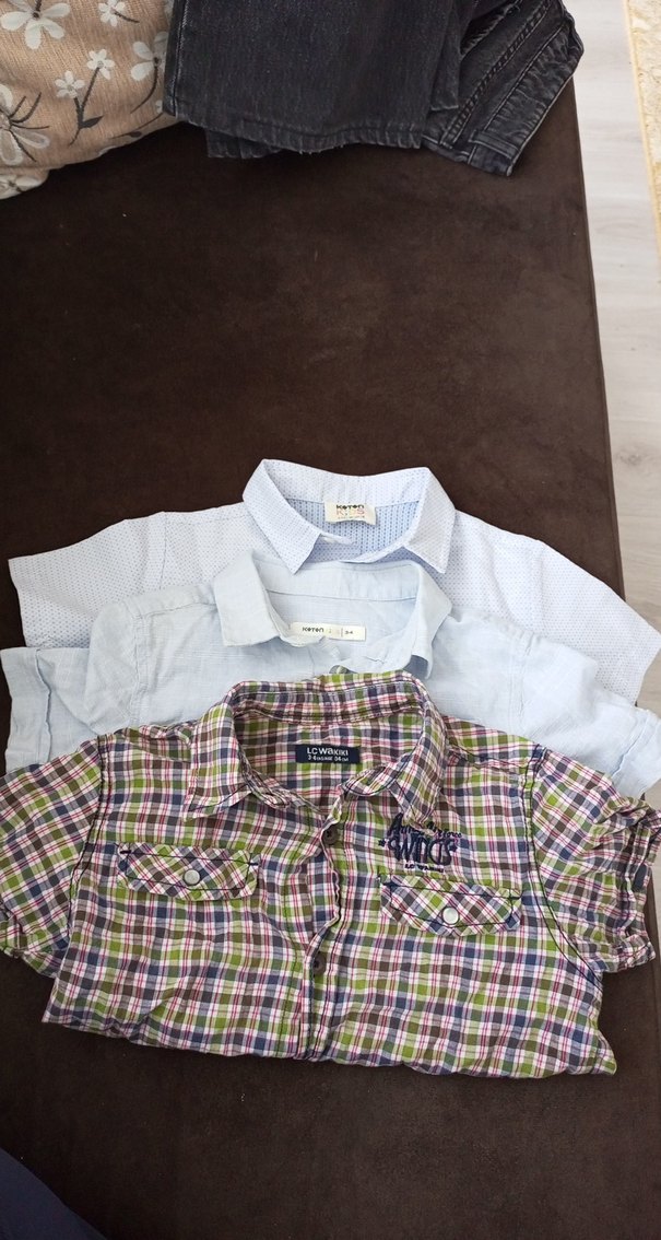Erkek çocuklar için yakalı, düğmeli ve kısa kollu gömlek. Yumuşak pamuk kumaştan, rahat kesim ve pastel çok renkli desenlidir. üsteki kullanilmamistir ikisi kullanılmış makul üründür
