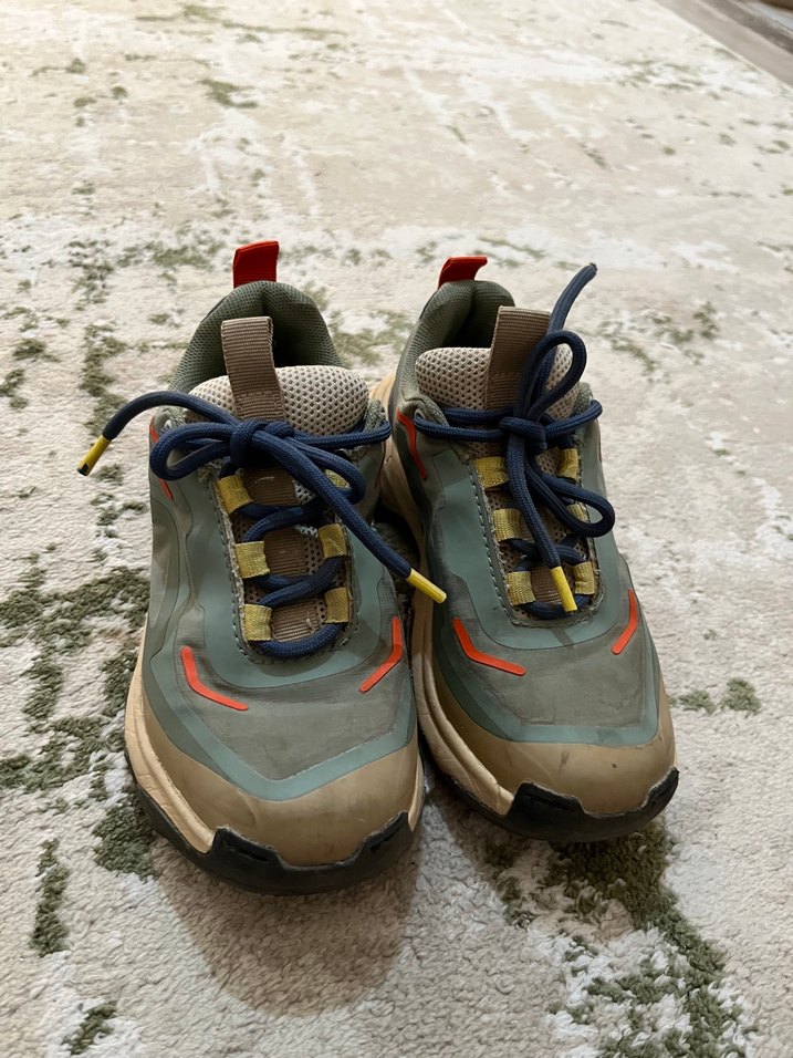 Erkek çocuklar için çok renkli, gri tabanlı spor ayakkabılar. Kauçuk tabanlı ve cırt cırtlı, sokak stili ve modaya uygun tasarıma sahip.