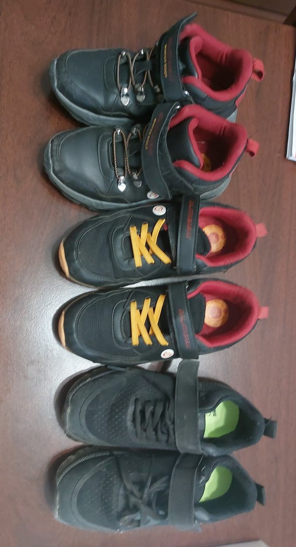 Erkek çocuklar için çok renkli, koyu tonlarda, cırt cırtlı ve kauçuk tabanlı spor ayakkabılar, sokak modasına uygun bot 32 ,siyah olan 33 numara,kinetix 34 numara 3 ayakkabıda çok az kullanıldı