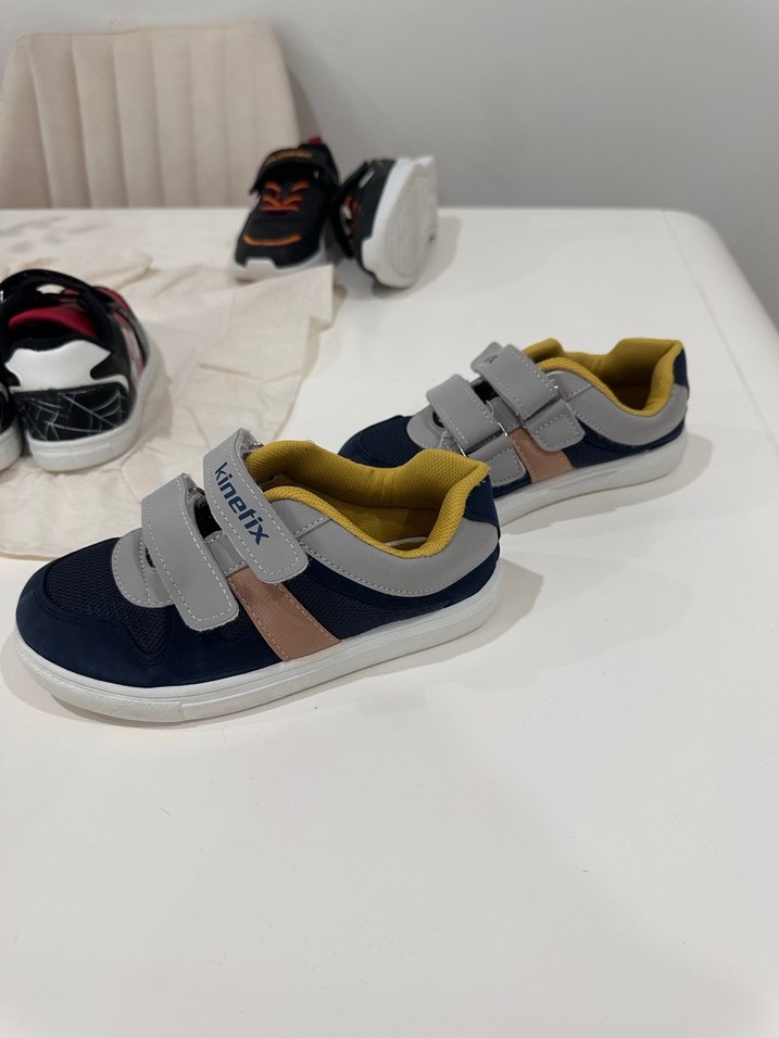 Erkek çocuklar için çok renkli baskılı spor ayakkabılar, cırt cırtlı bantlar ve kauçuk taban ile sokak modasına uygun rahat stil sunar.