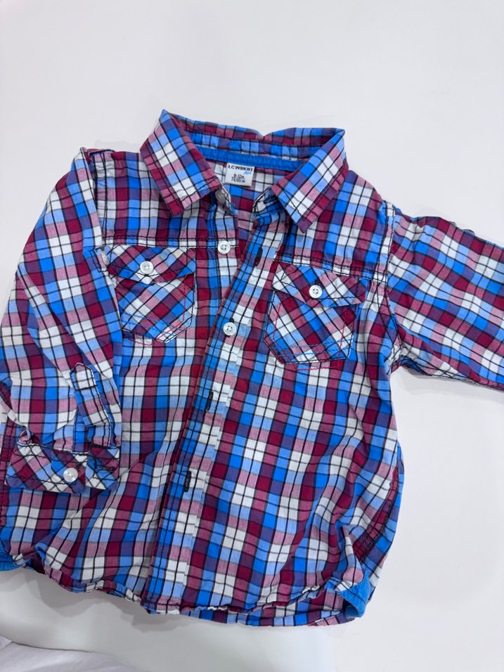 Erkek çocuk için çok renkli, düğmeli, uzun kollu, yakalı pamuk gömlek. Rahat ve bol kesimli, sokak stiline uygun.