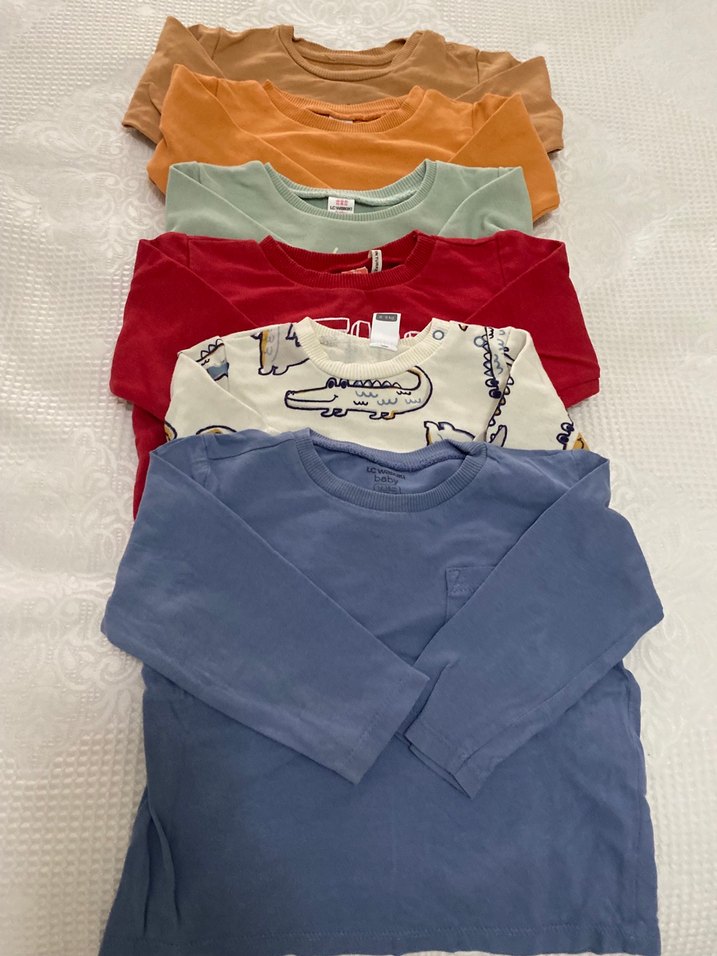 Erkek çocuklar için çok renkli, baskılı desenli, pamuklu uzun kollu tişörtler. Salaş kesim ve bisiklet yaka ile rahat bir stil sunar. Hiç bir yerinde leke yok temizdir.