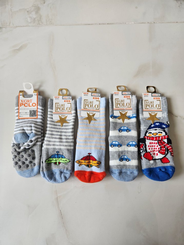 Gri tonlarında, arabalar, kardan adam ve çizgili desenler içeren çok renkli erkek çocuk çorap seti. Yumuşak dokulu ve kaymaz tabanlıdır. 1 ADET 20 TL DİR İSTEDİĞİNİZ ADET KADAR İLAN AÇTIRABİLİRSİNİZ. KALIN KIŞLIK ALTI KAYDIRMAZ PAMUKLU ÇORAPTIR.