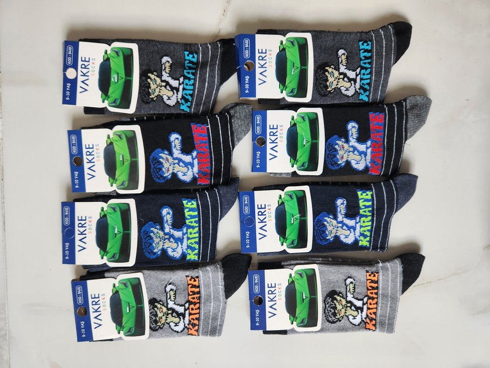 Baskılı karate desenli, koyu ve canlı çok renkli çocuk çorapları, eğlenceli ve hareketli bir görünüm sunar. 1 ADET 13 TL DİR. İSTEDİĞİNİZ ADETTE SEÇİP İLAN AÇTIRABİLİRSİNİZ. 9/10 YAŞTIR. 31/34 Numara aralığı