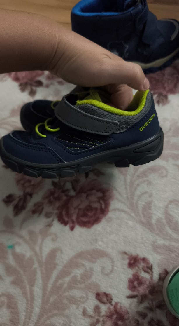 Mavi ve gri renklerde, baskılı desenli, cırtcırtlı kapamalı, kauçuk tabanlı erkek çocuk spor ayakkabısı.