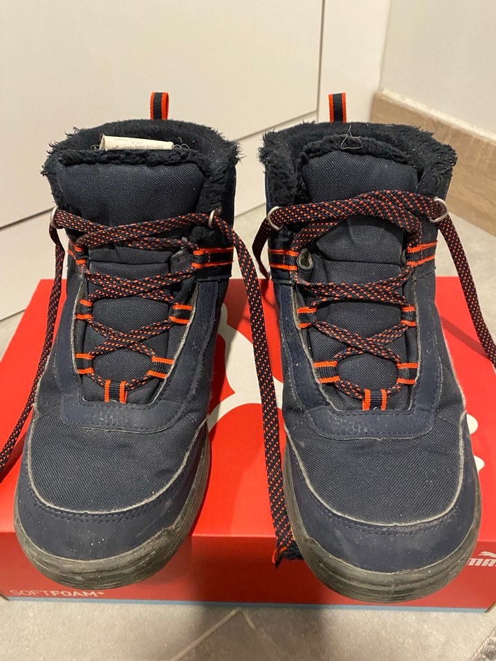 Decathlon su geçirmez cocuk botu.Lacivert renkli, kauçuk tabanlı, cırt cırtlı erkek çocuk botları. Trendy casual sokak stili için uygundur, desensiz ve sağlam bağcıklıdır.