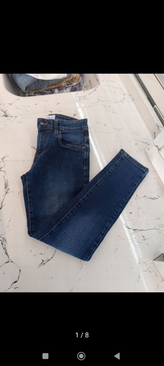 Lacivert renkte, midi boy, regular fit denim pantolon. Desensiz, günlük kullanım için rahat ve şık bir sokak giyimi tarzı sunar. yurtdışından alınmıştır