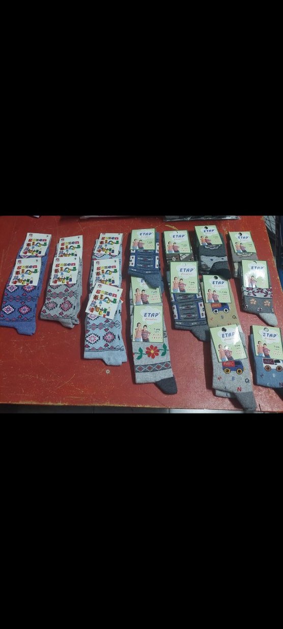 Erkek çocukları için çok renkli ve canlı gri tonlarda çeşitli desenlere sahip, yumuşak tekstil malzemeden üretilmiş çoraplar. 3-7-9 yaş mevcut.