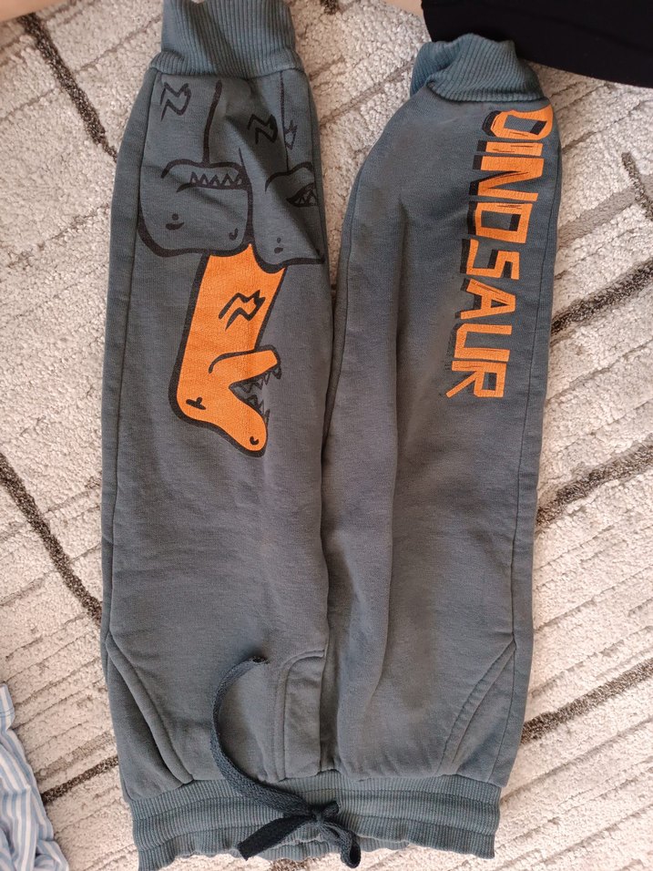Gri dinozor baskılı erkek çocuk eşofmanı. Rahat sokak giyimi için yumuşak ve sıcak kumaştan üretilmiştir.
